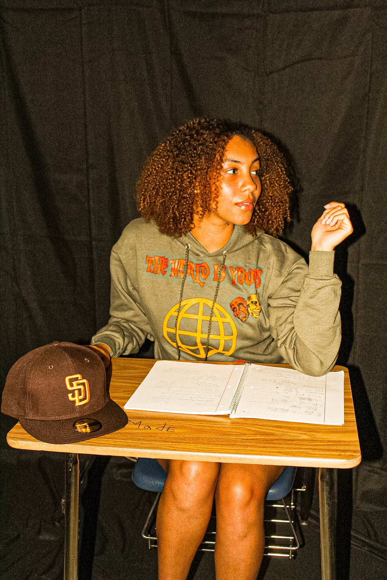 Pullover hoodie by YOUTH topped with handcrafted prints. Cotton poly fabrication sweatshirt with a brushed interior. Fitted with an adjustable hood, kanga pocket and ribbed knit trims.